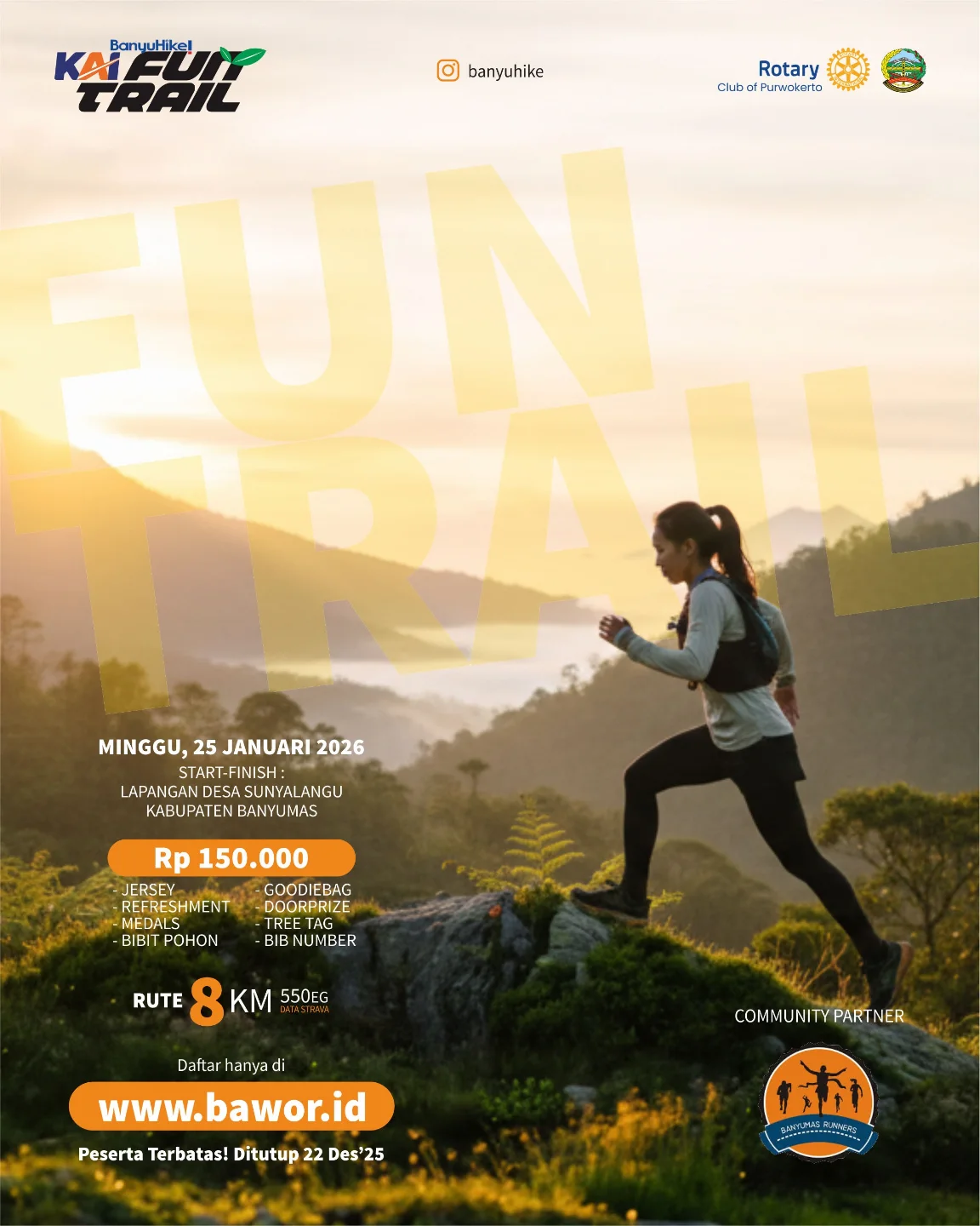 Banyuhike Fun Trail 2026, masih dengan lokasi yang sama yaitu perbukitan Desa Sunyalangu Kec Karanglewas. agenda Hiking dan Running kali ini akan dibarengi dengan aksi kepedulian lingkungan Penanaman 1000 Pohon, Penebaran benih/biji pohon menggunakan KETAPEL di kontur-kontur tanah lereng yang susah didaki. Pemberdayaan UMKM Lokal, Pengobatan Gratis dan Cek Kesehatan Gratis untuk masyarakat serta pagelaran seni dan budaya masyarakat setempat.